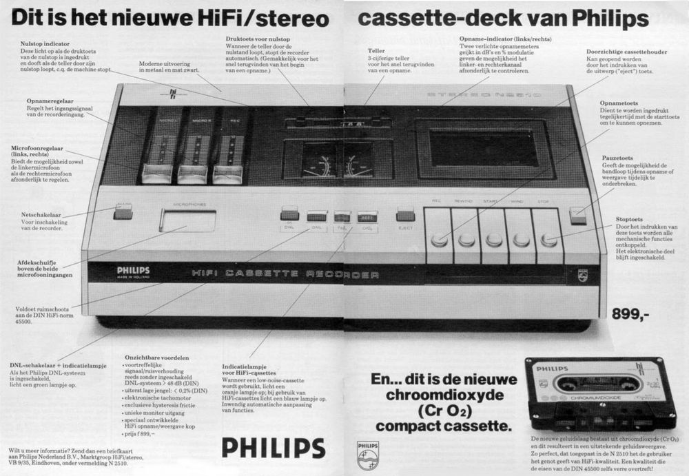 '80 zijn de dubbele cassetterecorders in de mode. Philips maakt daar op