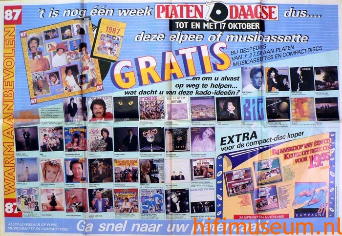 van twee krantenpagina's in de krant van oktober 1987. De bonus-elpee of